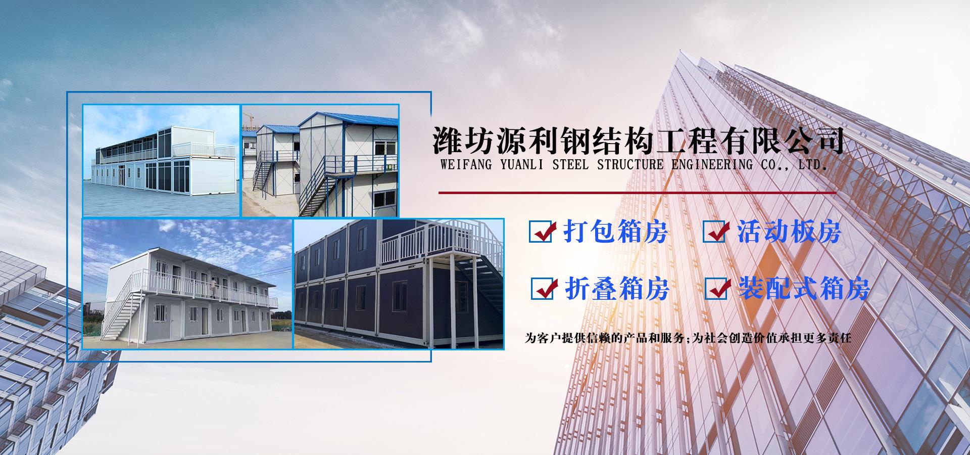 濰坊源利鋼結(jié)構工程有限公司成立于2015年,是一家從事活動房屋,鋼結(jié)構設計、制作、安裝為一體的公司。公司坐落于風景秀麗的藍寶石之鄉(xiāng)昌樂開發(fā)區(qū),占地約60畝,年加工生產(chǎn)能力到40萬平米,現(xiàn)已發(fā)展成本地較大的鋼結(jié)構企業(yè),同時也已跨入集成房屋研發(fā)、推廣企業(yè)行列。公司配備了全套的箱房流水線生產(chǎn)設備,包含了全自動冷彎成型設備、流水自動涂裝線、沖壓型材生產(chǎn)線以及全套的配套設備,標準化、模具化生產(chǎn)加工,年生產(chǎn)5000套打包箱,產(chǎn)品保障。 公司主要產(chǎn)品有:鋼結(jié)構工程加工、制作、安裝;各類活動板房、打包箱房、裝配式箱房、折疊箱房、圍擋、料棚、異型H型鋼、屋面板、墻面板、樓承板,C型鋼,Z型鋼;馬路隔離護欄等相關產(chǎn)品。
